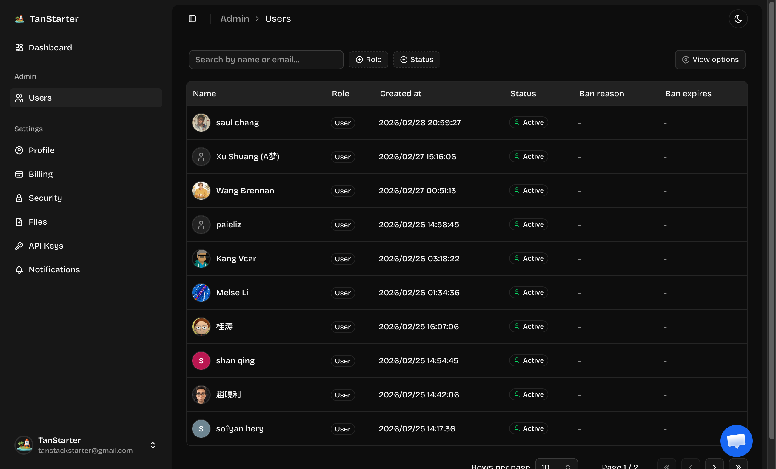 This guide covers the user management system in the TanStarter template, including user roles, permissions, and administrative actions.